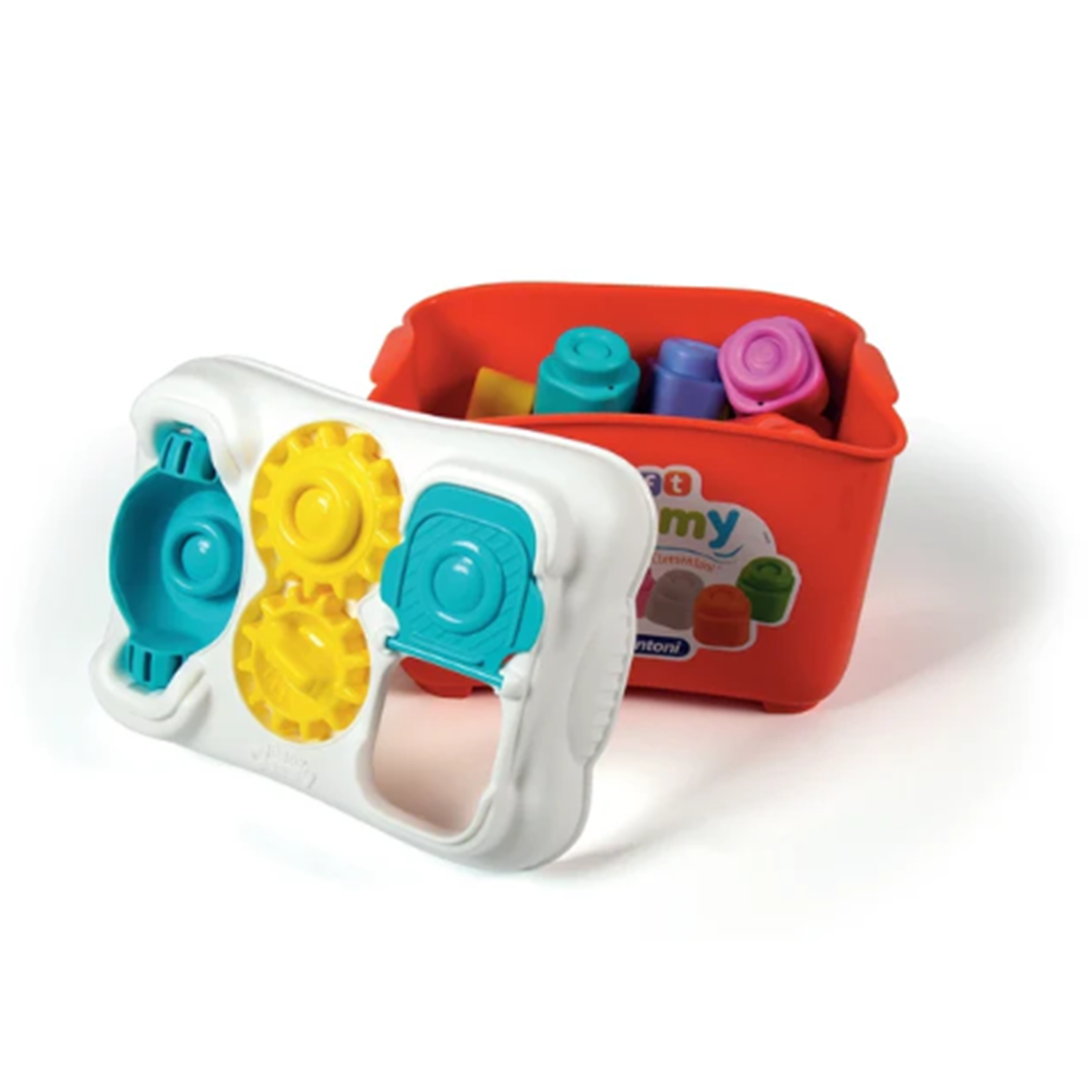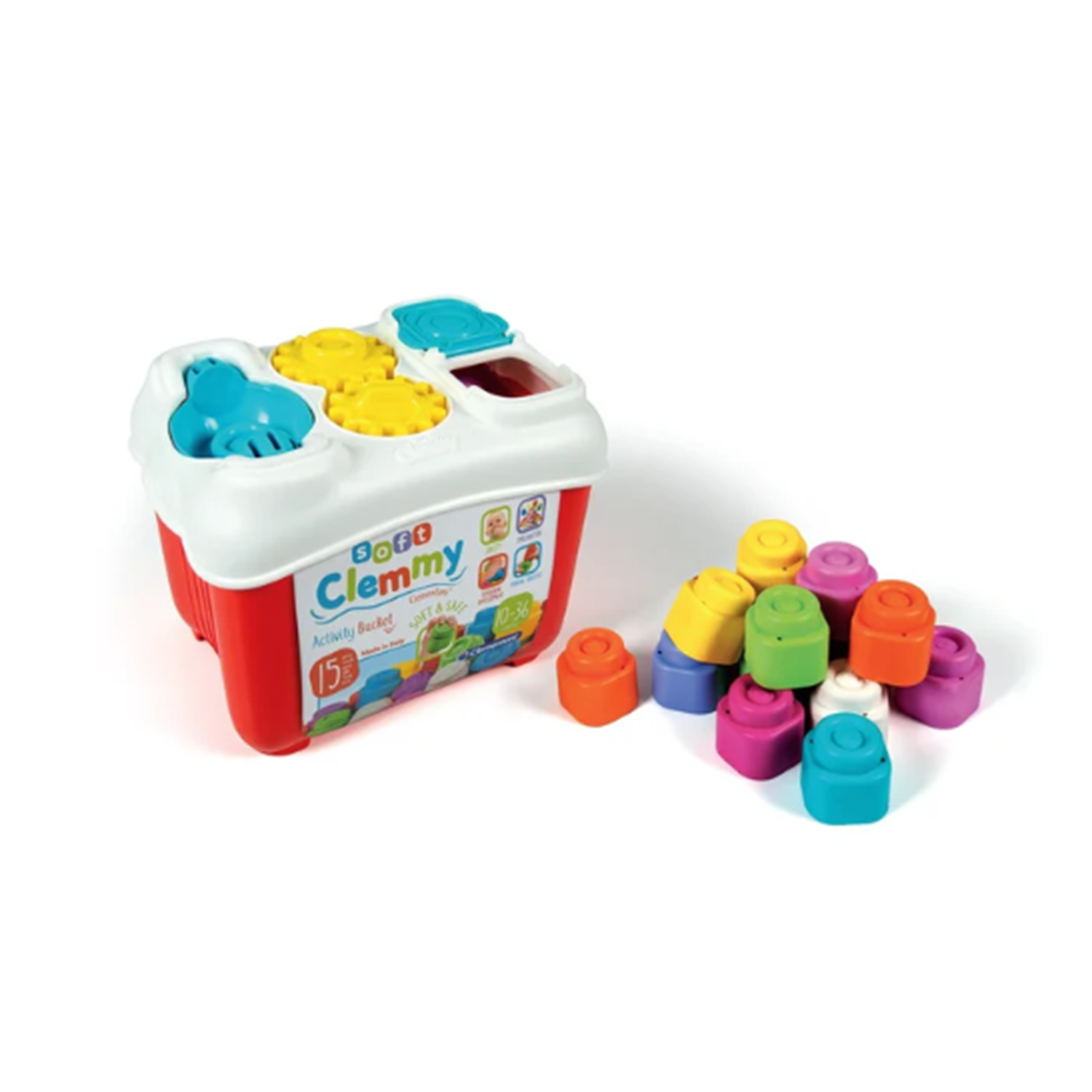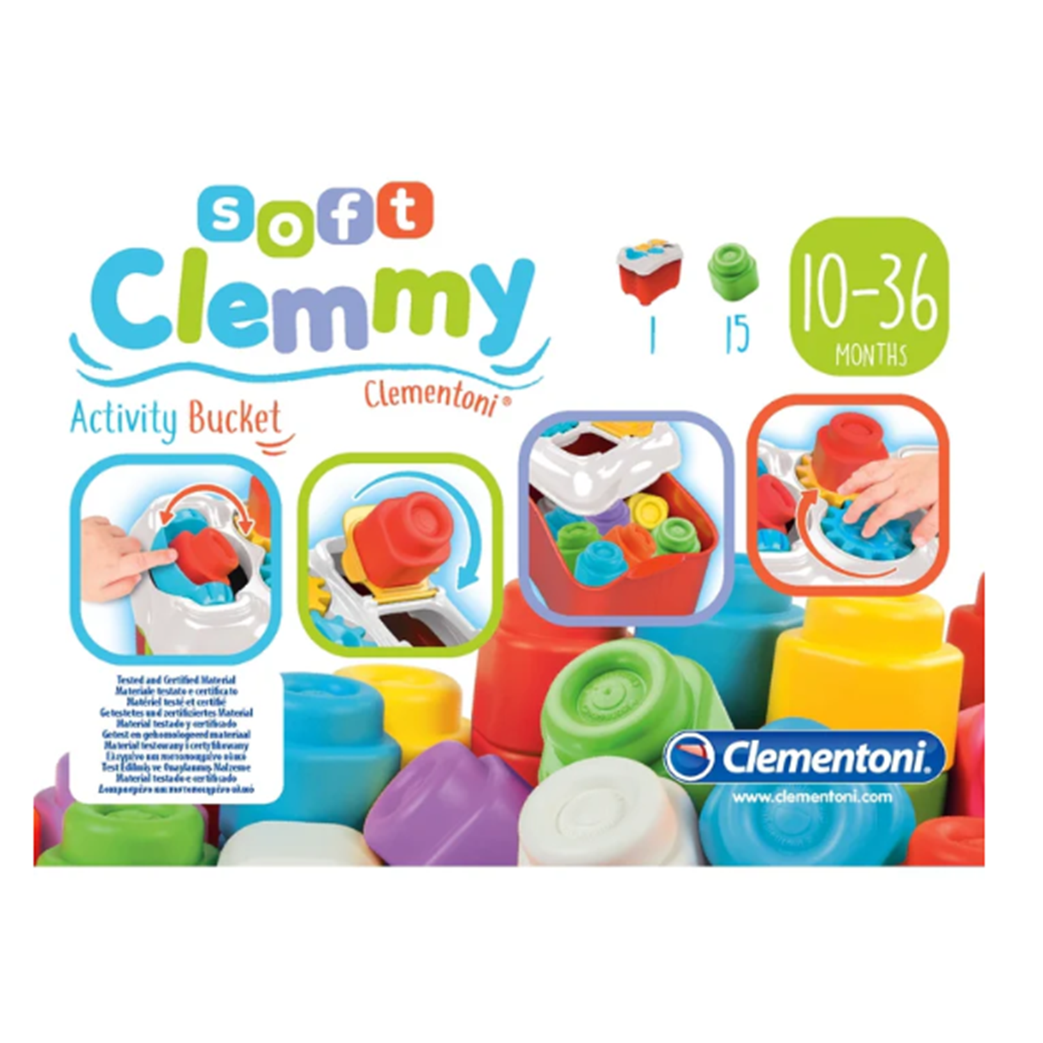 Özellikle bebekler için tasarlanmış ve 15 Clemmy bloğu ve birçok mekanik işlemi yapabilen eğlenceli kapağı ile, son derece renkli bir kova oyunu!