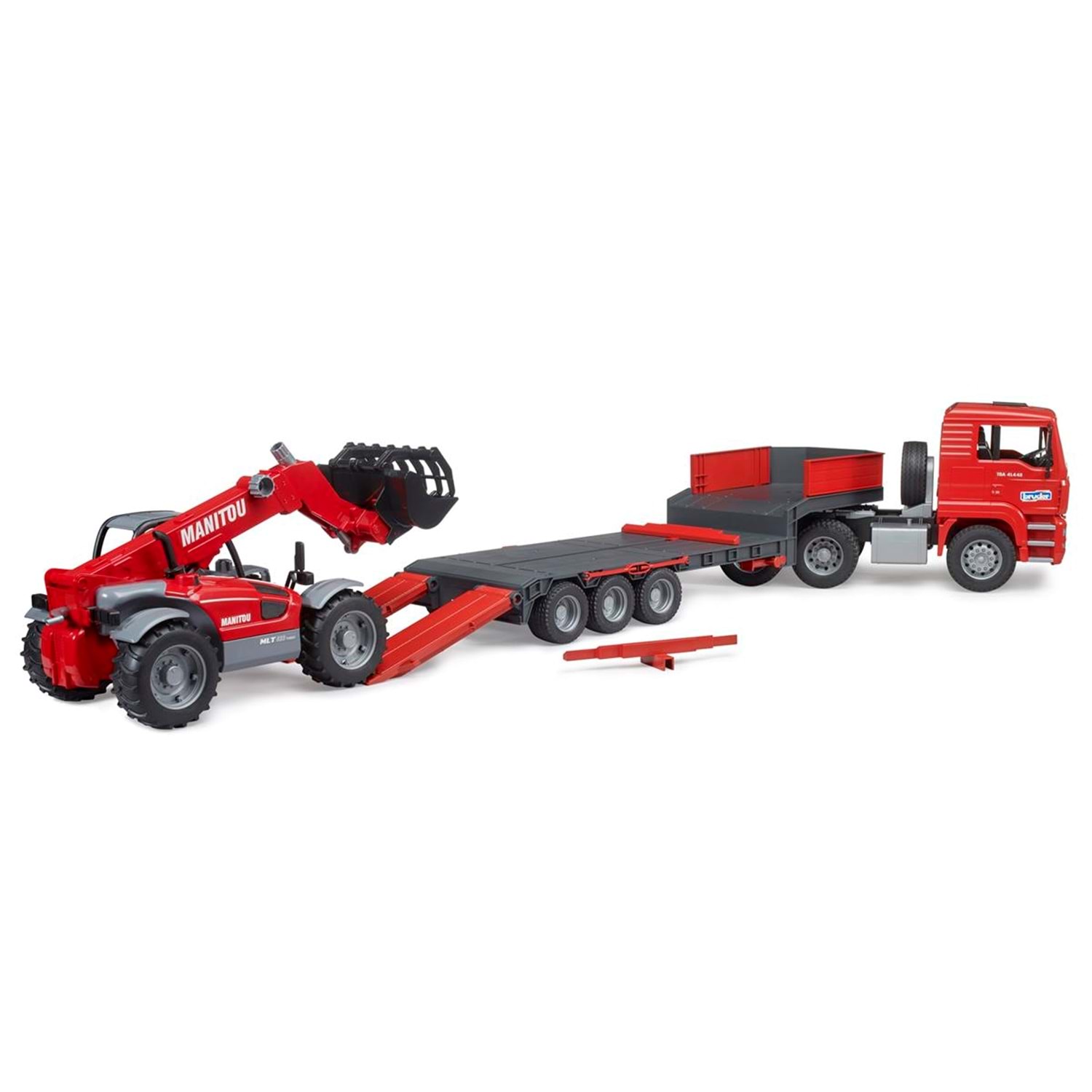 Tır üzerinde BR02125 bulunmaktadır Man lisanslıdır Arkasında bulunan rampaları indirerek taşıdığı araç rahatlıkla indirilip bindirilebilir Yumuşak kauçuk lastikleri bulunmaktadır Avrupa'da üretilmiştir Ürünlerin tamamı ABS ve benzeri yüksek kaliteli, çocuk sağlığına uygun plastiklerden üretilmektedir 3 yaş ve üzeri için uygundur 36 ay altındaki çocuklar için uygun değildir ÜRÜN ÖLÇÜLERİ : 86 × 18 × 24 cm ÜRÜN İÇERİĞİ : Man Tga Manitou