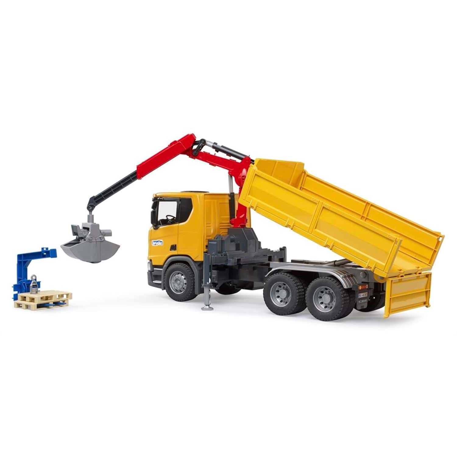 Scania lisanslıdır Yukarıya doğru kalkan damperi sayesinde yükünü boşaltabilir Üzerindeki hareketli vinci sayesinde yükleri yükleyebilir indirebilir Damperin açılabilen kapakları sayesinde kolaylıkla yükleme yapılabilmektedir Vincin ucuna takılan 2 farklı yükleme aparatı sayesinde çeşitli yükler dampere yüklenebilir Katlanabilen dış aynaları bulunmaktadır Yumuşak kauçuk lastikleri bulunmaktadır Açılan hareketli kapıları bulunmaktadır BR02801 kodlu siren ile uyumludur.(Haricen satılmaktadır) Almanya'da üretilmiştir Ürünlerin tamamı ABS ve benzeri yüksek kaliteli, çocuk sağlığına uygun plastiklerden üretilmektedir 4 yaş ve üzeri için uygundur 36 ay altındaki çocuklar için uygun değildir ÜRÜN İÇERİĞİ : Kamyon