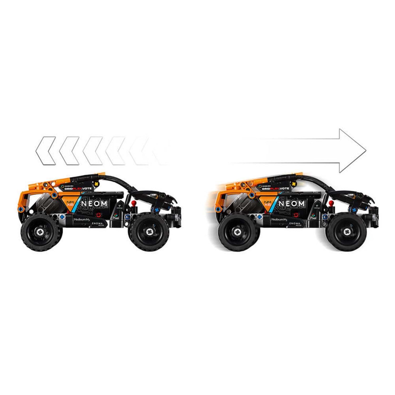 Oyuncak yarış arabalarını seven çocuklar için heyecan verici bir hediye mi arıyorsunuz? 7 yaş ve üzeri çocuklar için bu çek-bırak araba, her virajda nefes kesiyor. Çocuklar önce LEGO® Technic NEOM McLaren Extreme E Race Car (42166) modelini keyifle inşa edebilir. Sonra çek-bırak fonksiyonunu kullanarak arabayı yarıştırıp eğlenme zamanı. Gerçek modelin karakterini yansıtan bu oyuncak araba, büyük arazi lastiklerine, göz alıcı renklere ve orijinal ortak logolarına sahip. Çocuklar, gerçek bir Extreme E sürücüsü gibi dünyanın uzak yerlerinde yarışmanın nasıl bir şey olduğunu hayal etmeye bayılacak. bu set, araçları ve oyuncak arabaları seven çocuklar için eğlenceli bir doğum günü ya da özel gün hediyesidir. LEGO Technic yapım setleri, küçük LEGO severleri eğlenceli bir şekilde mühendislikle tanıştırmak için gerçekçi detaylara sahiptir. LEGO Builder uygulamasıyla çocuklara tatmin edici bir yapım macerası verin. Burada modelleri yakınlaştırıp döndürebilir ve ilerlemeyi takip edebilirler.; 7 yaş ve üzeri erkek ve kız çocuklar için çek-bırak araba – Araçlı rol yapma faaliyetleri için çek-bırak fonksiyonlu NEOM McLaren Extreme E Race Car oyuncak yapım setiyle çocuklara eğlenceli bir yapım projesi verin; Çek-bırak oyuncak araba – Çocuklar, gerçek bir Extreme E sürücüsü gibi dünyanın her yerinde yarıştıklarını hayal ederken çek-bırak fonksiyonunu kullanarak LEGO® Technic modellerini hızla sürebilir; Büyük lastikler – Oyuncak araba modeli, arazi lastikleri ve ortak logoları gibi gerçek yarış arabasından esinlenen orijinal detaylara sahiptir; Çocuklar için araba hediyesi – Bu set, araç oyuncaklarını ve arazi arabalarını seven erkek ve kız çocuklar için eğlenceli bir doğum günü, yılbaşı ya da özel gün hediyesidir; Mühendisliğe giriş – LEGO® Technic inşa edilebilen model setleri, genç LEGO severleri mühendislik evreniyle tanıştıran gerçekçi hareketlere ve mekanizmalara sahiptir; Ölçüler – 252 parçalı setteki arabanın yüksekliği 8 cm, uzunluğu 18 cm, genişliği 10 cm’dir.